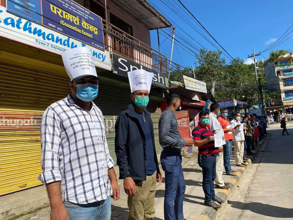 दमौली ट्राफिक चोकबाट सफा सडकसम्म सडक छेउ उभिएका सहभागीले मौन रुपमा उभिएर प्ले कार्ड प्रदर्शन गरेका थिए ।