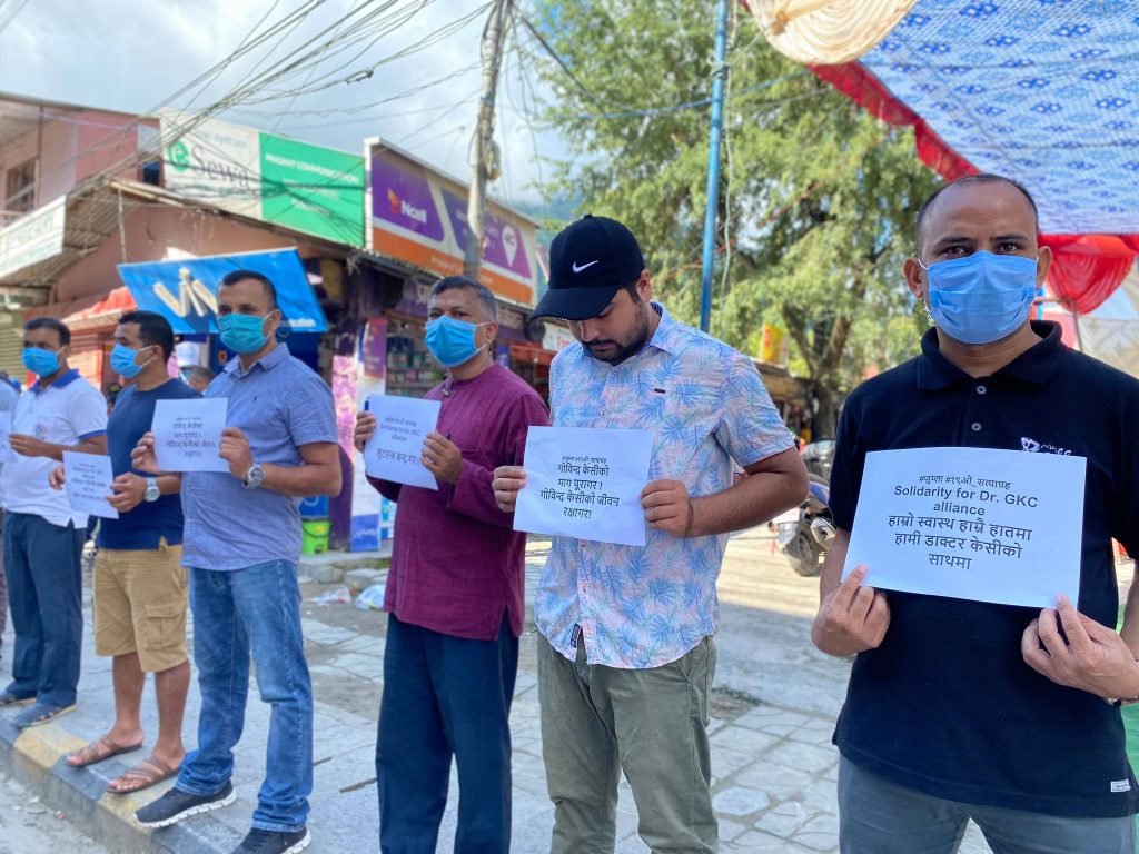 पटक पटक गरी १९ पटकसम्म सत्याग्रह गरेका चिकित्सक केसी फेरि पनि अनशनमा बसे पनि उनका माग पुरा गर्न सरकारले गम्भीरता नदेखाएको भन्दै दबाब दिन कार्यक्रम गरिएको बताए । ‘डा केसीका पक्षमा दबाब दिन आन्दोलन गरेका हौं,’ उनले भने,‘माग पुरा नभए फेरि आन्दोलनमा उत्रन्छौं ।’