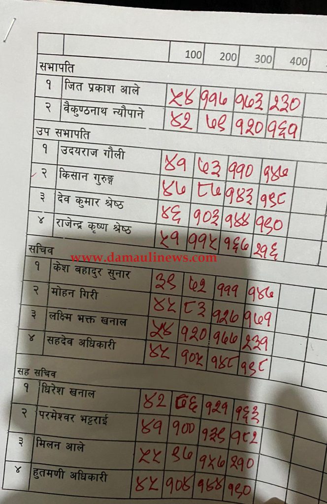 बीपी स्मृति भवन दमौलीमा जारी मतगणनाको पहिलो चरणको नतिजामा आलेसहित उनको प्यानल नै अगाडि छ ।