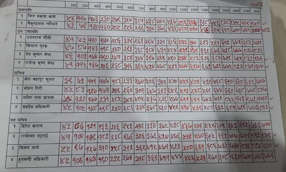 संस्थापनकिट खनालका अर्का सहकर्मी सचिवमा संस्थापनका सहदेव अधिकारी र इतरका मोहन गिरीबीच झिनो अन्तरको लडाइंकाबीच खनाल विजयी भएका हुन् । उनले 1020 मत ल्याएका छन् । सभापतिमा जितेका जीतप्रकाश आलेले ९५१ मत पाए ।
