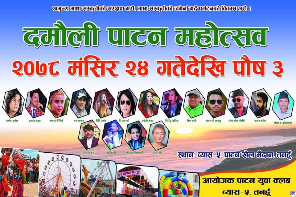 दमौलीः व्यास ५ पाटनमा पहिलो पटक हुन लागेको प्रथम दमौली पाटन सांस्कृतिक एवं पर्यटकीय महोत्सवको तयारी तीव्र गतिमा अघि बढिरहेको आयोजकले जनाएको छ ।