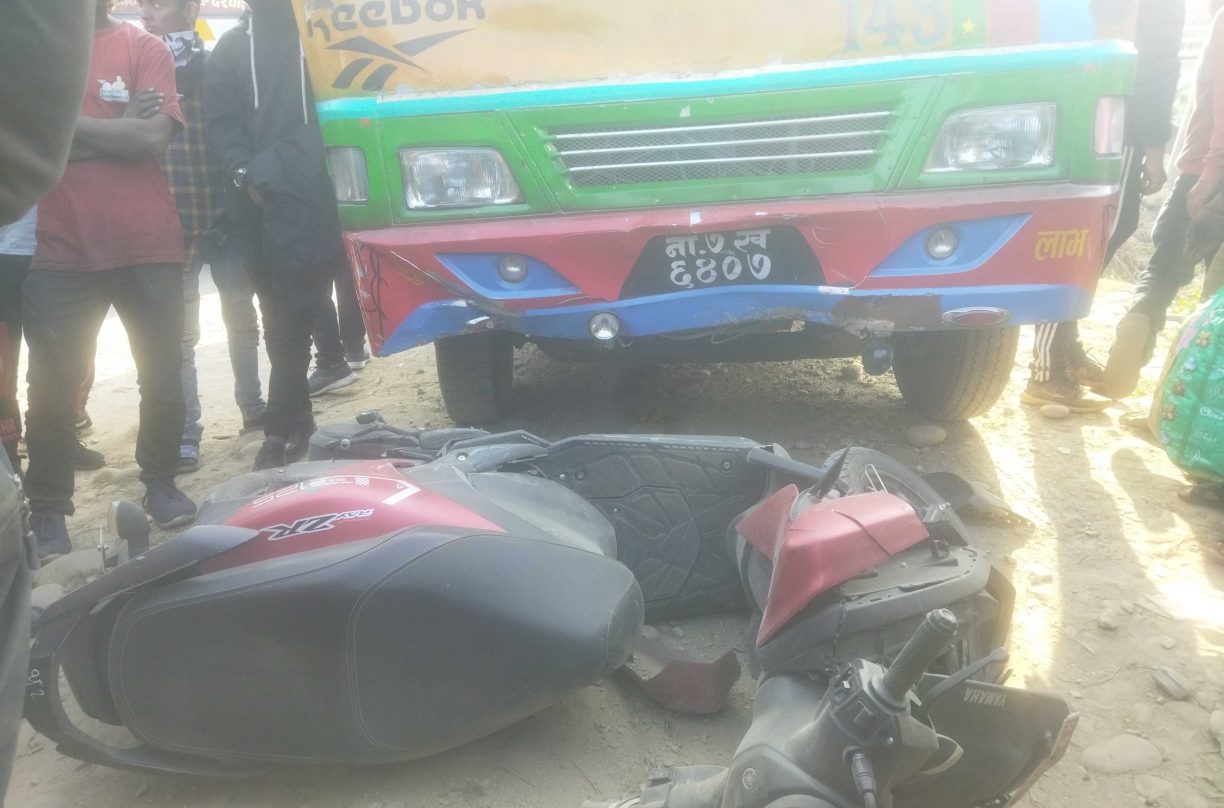 दमौली । शनिबार दिउसो दुर्घटनामा परी घाईते भएका तनहुँका एक व्यक्तिको उपचारको क्रममा मृत्यु भएको छ । मृत्यु हुनेमा व्यास न.पा.–२ मालेबगर बस्ने बर्ष ६० को खड्गबहादुर लामा रहेका छन् । पृथ्वीराजमार्ग खण्डमा पर्ने व्यास न.पा.–१ सिमलटारमा डुम्रेबाट दमौली जाँदै गरेको ग १९ प ८५६४ न.को स्कुटर र बिपरित दिशाबाट जादै गरेको ना ७ ख ६४०७ न.को बस एक आपसमा ठक्कर खाँदा स्कुटर चालक लामा घाईते भएका थिए । दमौली स्थित रत्नहरी अस्पताल दमौलीमा सामान्य उपचार पश्चात थप उपचारको लागि पोखरा पठाइएको उनको शनिबार साँभ नै मृत्यु भएको जिल्ला प्रहरी कार्यालय तनहुँका प्रहरी नायव उपरीक्षक युवराज खड्काले जानकारी दिए ।
