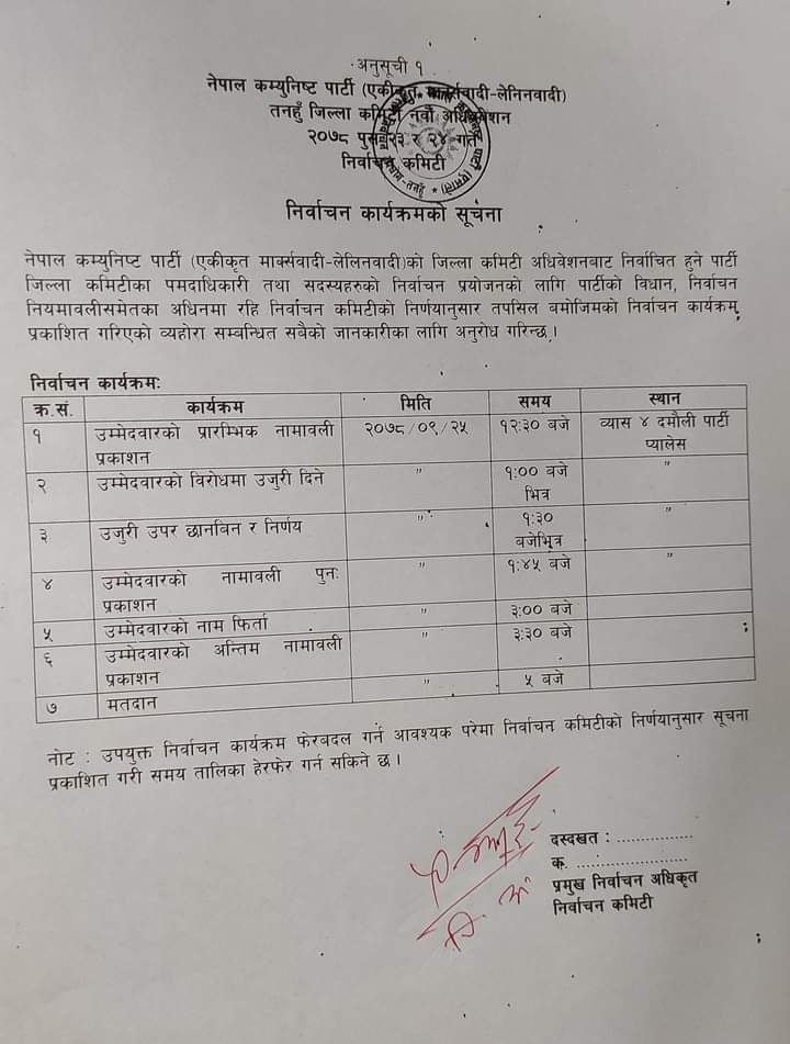 निर्वाचन समितिले सहमति नभएमा भन्दै निर्वाचन तालिका सार्वजनिक गरेको छ ।