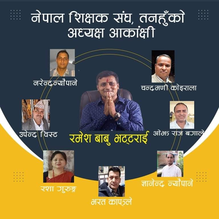 झण्डै २८ सय मतदाता रहेको संघमा नेतृत्वका इच्छुकहरूले भेटघाट, टेलिफोनसम्पर्क पनि बढाएका छन् । हालसम्म हालका प्रदेश प्रतिनिधि रमेशबाबु भट्टराईका अलावा सचिव अर्थ नरेन्द्र न्यौपाने, संघीय प्रतिनिधि भरत काफ्ले, संघीय प्रतिनिधि ज्ञानेन्द्र न्यौपाने, उपाध्यक्षद्वय रसा गुरूङ र ओजराज बगाले, संघिय प्रतिनिधिहरू चन्द्रमणि कोइराला, रोहिणीराज पौडेल , भानु नगर अध्यक्ष उपेन्द्र बिष्ट, पुर्व सचिव पदम खनाल, रामदत्त पौडेल, मोहन गिरी लगायतका शिक्षक नेताहरू अध्यक्षको दौडमा देखिएका छन् ।