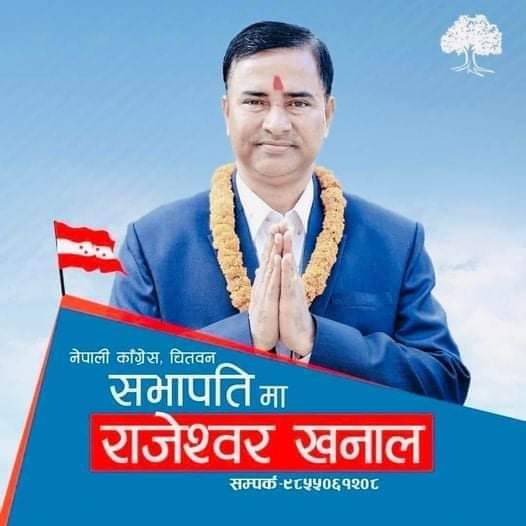 चितवनः नेपाली कांग्रेस चितवनको सभापतिमा राजेश्वर खनाल निर्वाचित भएका छन् ।