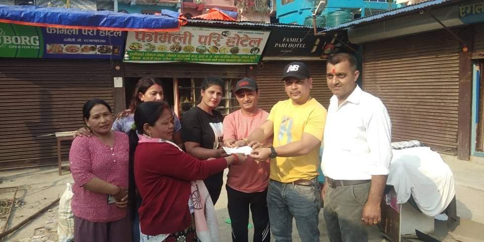 दमाैलीकाे तनहुँसुर मिनी मार्केट भित्र फेमिलि हाेटल सञ्चालन गरि बस्ने जमुना गुरूङकाे हाेटल मा अागलागि भएको दिन सामान निकाल्ने क्रममा सबै सामान क्षति भएको थियो । अागाेले नटिपेपनि पुर्ण प्रभावित भएको र व्यवसायीलाई अफ्ट्यारो पर्दा थाेरै भए पनि सहयोग गर्नु मानविय धर्म सँगै संस्थाकेा दायित्व भएकोले सहयोग गरिएको दमाैली बजार एकाई सभापति शंकर अधिकारीले बताए ।