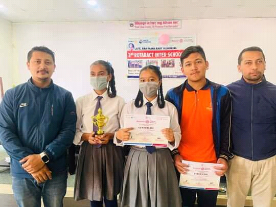 दमौली: रोटर्याक्ट क्लब अफ दमौलीको आयोजनामा शुक्रवार अन्तर विद्यालय हाजिरी जवाफ प्रतियोगिता सम्पन्न भएको छ । क्लबले विगत ३ वर्षदेखि स्वर्गीय राममाया राउतको स्मृतिमा आयोजना गर्दै आएको व्यास नगरस्तरीय अन्तर विद्यालय हाजिरी जवाफ प्रतियोगिता सम्पन्न भएको हो ।