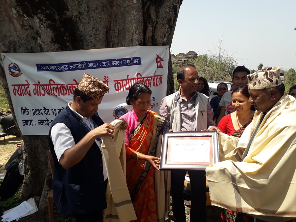 म्याग्दे : म्याग्दे गाउँपालिकाको १२५औं कार्यपालिका वैठक शनिवार म्याग्देको बहपुरमा सम्पन्न भएको छ । कार्यपालिका वैठकले विभिन्न महत्वपूर्ण निर्णयहरू गरेको छ । बैठकले ल्याण्ड फिल्ड साइडका लागि जग्गा दिने ९ जना लाइ सम्मान गरेको छ ।