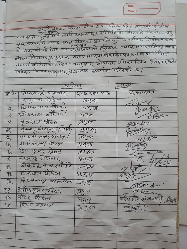 पार्टी व्यास नगर समितिले आवेदन खुलाएकामा पार्टीका जिल्लास्तरका दर्जनबढी नेताहरुले मनोनयन निवेदन दिएका हुन् ।