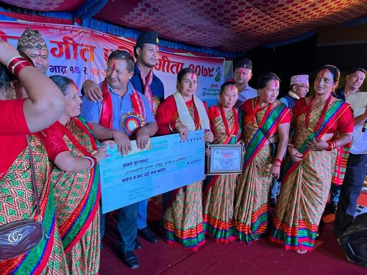 जामुने : न्यु भिजन युथ क्लब जामुनेको आयोजनामा भएको १० औं खुल्ला तीज गीत प्रतियोगितामा नागपँधेरी आमा समुह(चापाघाट) प्रथम भएको छ ।