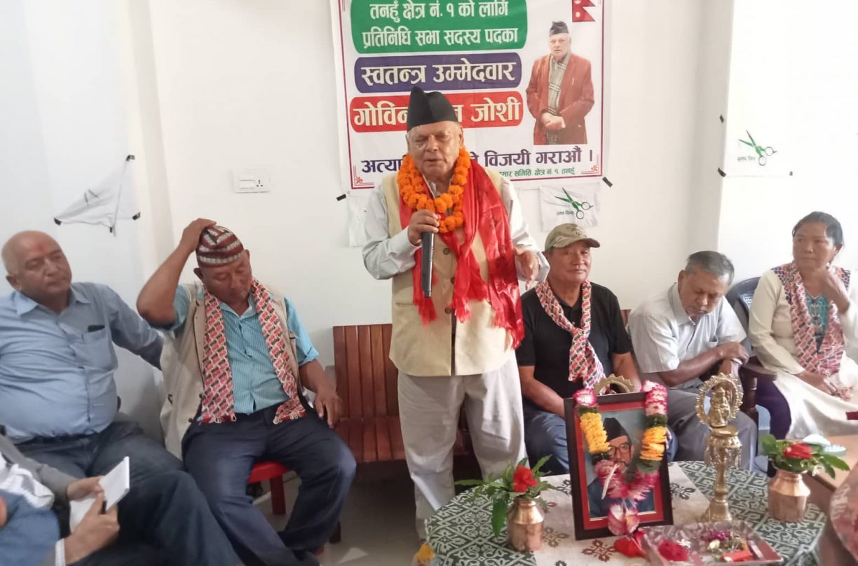 दमौलीः नेपाली कांग्रेसका पुर्व सहमहामन्त्री एवम् तनहुँ क्षेत्र नं १ का स्वतन्त्र उमेदवार गोविन्दराज जोशीले आँफुले मंसिर ४ गते हुने चुनाव जित्ने दावी गरेका छन् ।