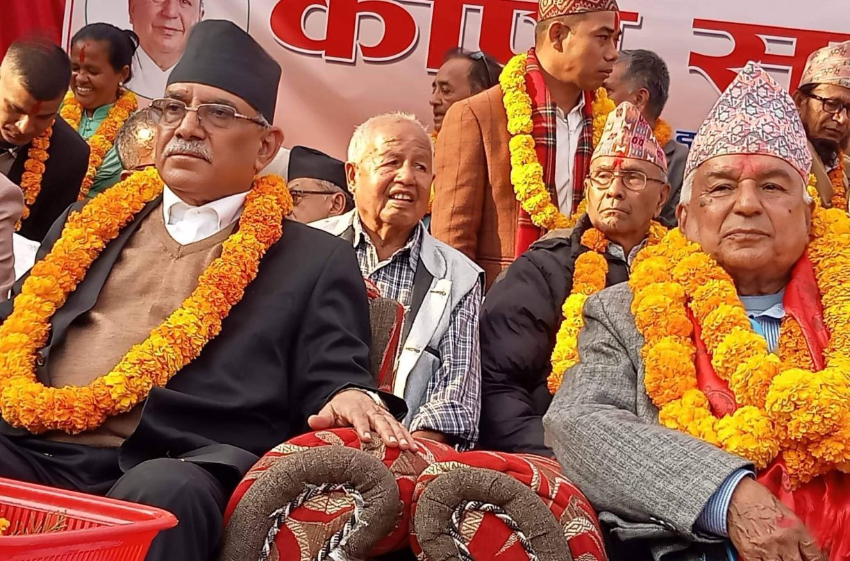 अध्यक्ष दाहालले भने, ‘मंसिर ४ गतेको प्रदेश र संघको निर्वाचनमा हामीले फेरि प्रतिगमनले टाउको उठाउन नसक्ने गरी नेपाली जनताले एकता प्रदर्शन गर्नुपर्नेछ। देशभरिका जनताले गठबन्धनको नेतृत्व अन्तर्गत गठबन्धनका हाम्रा उम्मेदवारलाई अत्यधिक बहुमत दिएर विजयी बनाएपछि देशमा फेरि राजनीतिक दुर्घटना गर्न प्रतिगामी र अवसरवादी तत्वहरू पूरै पराजित हुनेछन्। स्थिरता र विकासको एउटा नयाँ मार्ग खुल्नेछ। ’ कार्यक्रममा गठबन्धनका उम्मेदवार एवम् नेपाली काङ्ग्रेसका बरिस्ठ नेता रामचन्द्र पाैडेलले बताए ।