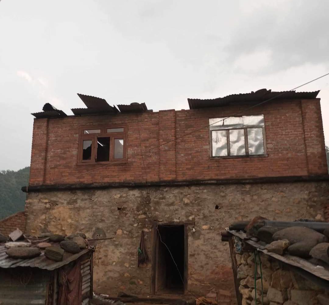 विहिवार ५ वजे अचानक आएको हावाहुरीले तनहुँको व्यास १४ कुलुङ,माझथरको घरको टिन उडाएर क्षति पुर्याएको हो।