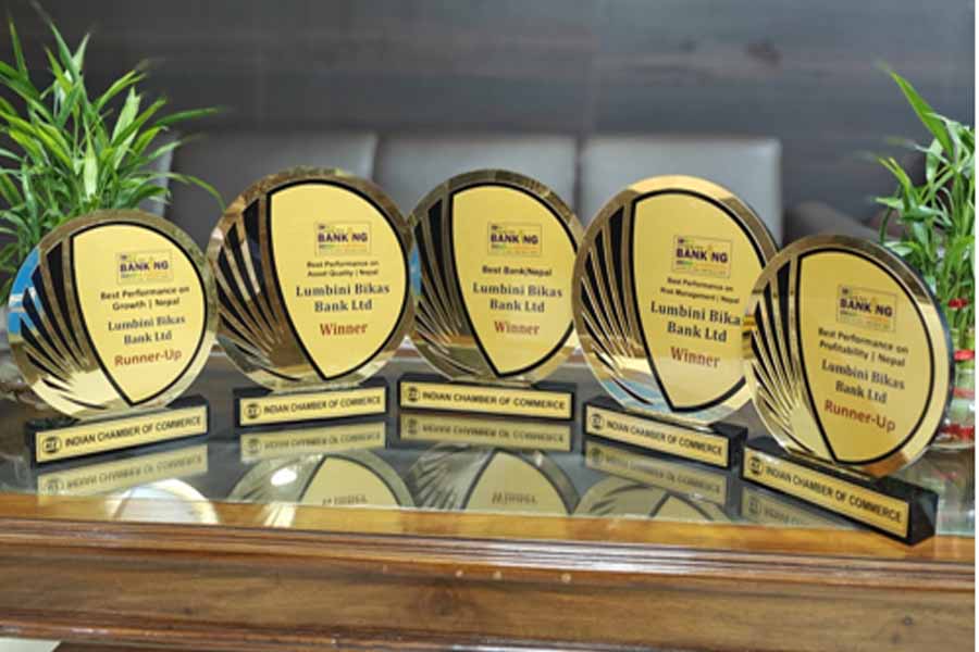 भारत : इण्डियन चेम्वर अफकमर्सले आयोजना गरेको दोश्रो इमर्जिङएशिया बैंकिङ अवार्डस् २०२४ को ८ विधा मध्ये लुम्बिनी विकास बैंकले पाँच विधामा सहभागिताजनाई पाँच ैवटै विधामा उपाधि जित्न सफल भएको छ । इण्डियन चेम्बर अफकमर्सले भारतको नयाँदिल्लीमा आयोजना गरेको बैंकिङ कन्क्लेभ २०२४ मा लुम्बिनी विकास बैंकले बेष्ट बैंक, बेष्ट पर्फमेन्स अन रिस्क मेनेजमेन्ट नेपाल, बेष्ट पर्फमेन्स अन एसेष्ट मेनेजमेन्ट नेपालमा विजेता एवंम ्बेष्ट पर्फमेन्स अन प्रोफिटा बिलिटी नेपाल र बेष्ट पर्फमेन्स अन ग्रोथ नेपालमा उपविजेताको उपाधिजित्न सफल भएको हो ।
