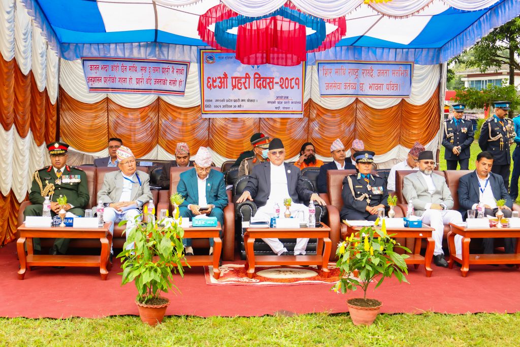 उक्त कार्यक्रममा बोल्दै कार्यक्रमका प्रमुख अतिथि मुख्यमन्त्री पाण्डेले सिमित साधनस्रोतका बाबजुद गण्डकी प्रदेशमा नेपाल प्रहरीले खेल्दै आएको भूमिका प्रशंसनीय रहेको बताउनुभएको छ ।देशमा शान्ति, सुरक्षा र अमनचयन कायम गराउने कुरामा नेपाल प्रहरीले विशिष्ट योगदान गर्दै आएको बताउदै मुख्यमन्त्री पाण्डेले नेपालमा जहानीय राणा शासनको अन्त्य गर्दै प्रजातन्त्रको स्थापना गर्न २००७ सालमा महत्वपूर्ण भूमिका निर्वाह गरेको र मुक्ति सेनासँग नेपाल प्रहरीको सम्बन्ध जोडिएको उल्लेख गर्दै प्रहरी संगठनको ऐतिहासिक गरिमा र महत्व रहेको बताउनुभयो ।