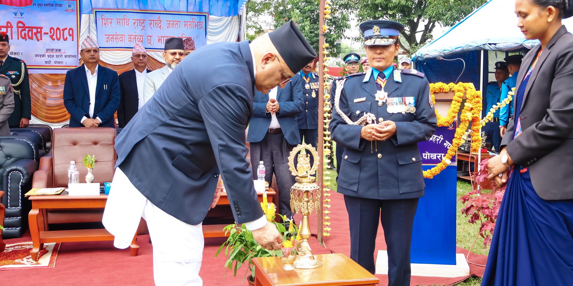 प्राकृतिक प्रकोप, शान्ति सुरक्षा लगायतका हरेक घडीमाआफूलाई इमान्दारिता, जिम्मेवारिताका साथ अघि बढाउँदै आएको प्रहरीले व्यवसायिक रुपमा पनि आफूलाई उत्तिकै सक्षम बनाएको उहाँले बताउनुभयो।उपस्थित अतिथी ज्युहरुलाई धन्यवाद ज्ञापन गर्दैगण्डकी प्रदेश प्रहरी प्रमुख प्रहरी नायव महानिरीक्षक दुर्गा सिहले विगतदेखि नै राष्ट्र र जनताको सेवामा निरन्तर खट्दै आएको प्रहरी संगठन सदैब जनमुखी, पारदर्शी र छिटो छरितो सेवा प्रवाहमा प्रतिवद्ध रहेको बताउनुभयो ।