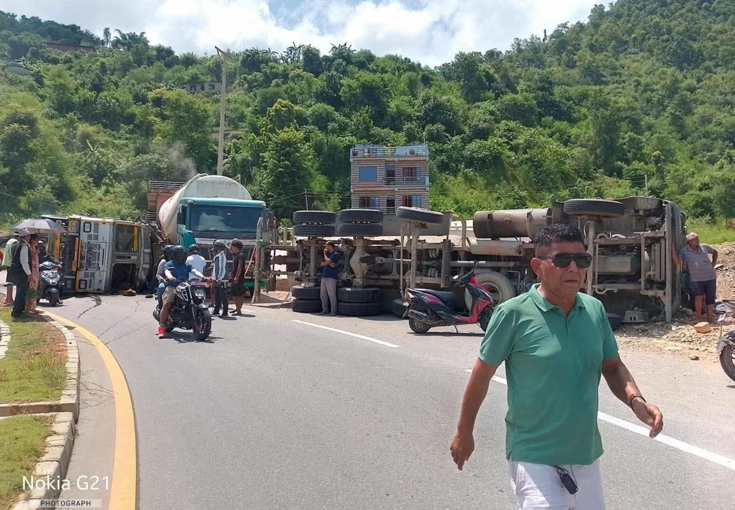 दमौली : तनहुँको व्यास नगरपालिका–१२ कमलबारी स्थित पृथ्वीराजमार्ग सडक अन्र्तगत घुम्तीमा प्लाई बोकेको ट्रक दुर्घटना हुँदा तीन जना घाइते भएका छन् । भारतबाट प्लाई बोकेर दमौली आउँदै गरेको युपी १९ टी २५०६ नम्बरको ट्रकले सोही स्थान नजिक रोकिराखेको युपी ४२ बिटी ३९८१ नम्बरको सिमेन्ट बोक्ने ट्रकसंग उक्त ठक्कर खाँदा दुघर्टना भएको हो ।