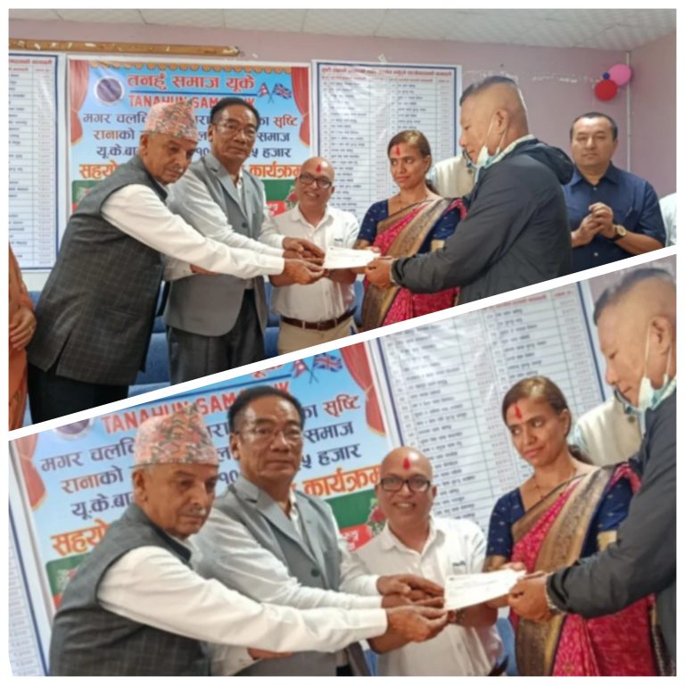 भिमाद नगरपालिकाको सभाहलमा सम्पन्न कार्यक्रममा गण्डकी प्रदेशका सांसद जीत प्रकाश आले, नगरप्रमुख दधिराज सुवेदी, तनहुँ समाज यूकेका प्रतिनिधि शोभा गौतम र डा. प्रकाश गौतमले संयुक्त रूपमा रानाका बुवालाई चेक हस्तान्तरण गरिएको थियो।