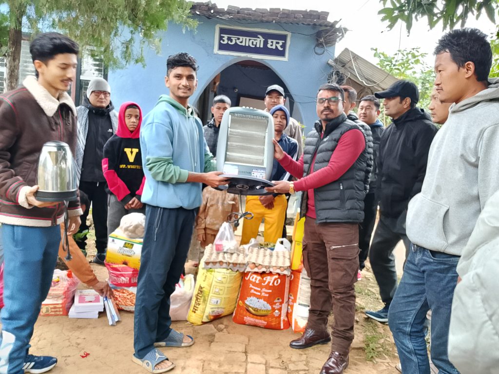 तिहारमा देउसी भैलो खेलेर क्लबले संकलन गरेको केहि रकमबाट उज्यालो घरमा चामल तेल,नुन दाल, अण्डा,कपी ,कलम र चिसोबाट बच्नको लागि ब्लाङ्केट र हिटर सहयोग गरेको क्लवले जनाएको छ । उज्यालो घरका अध्यक्ष सागर घिमिरेलाई उक्त सहयोग सामाग्री हस्तान्तरण गरिएको थियो।