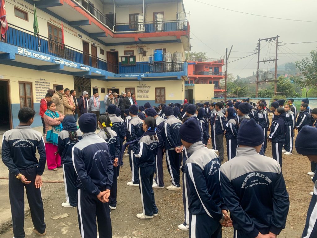 आज स्कुलमा गई कक्षा नर्सरी देखि ९ कक्षा सम्मका विद्यार्थीहरूलाई स्विटर वितरण गरिएको अशोक रानाले जानकारी दिए । उनका अनुसार चिसो मौसमका कारण अध्ययनमा असर नपरोस् भन्ने उद्देश्यले स्कुलमा गई न्यानो कपडा वितरण गरिएको बताए।