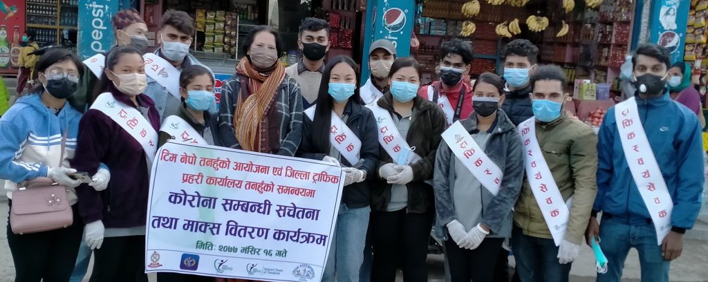 संस्थामा आवद्ध युवाहरुले दिनभर बजारका विभिन्न भाग र रोकिएका सवारीमा चढ्ने तथा यात्रा गर्न लागेका यात्रुलाई मास्क तथा स्यानिटाइजर पनि वितरण गरेका थिए ।