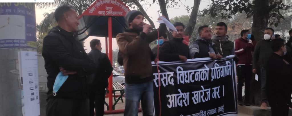 नेकपा पार्टी कार्यालयबाट निस्केको ¥यालीले प्रधानमन्त्री केपी शर्मा ओलीविरुद्ध नाराबाजी गरेको थियो । अनेरास्ववियु तथा युवा संघका युवाहरु सहभागी ¥यालीका सहभागीले संसद विघटन खारेज गर, संसद विघटन मान्दैनौं लगायतका नारा लगाएका थिए ।