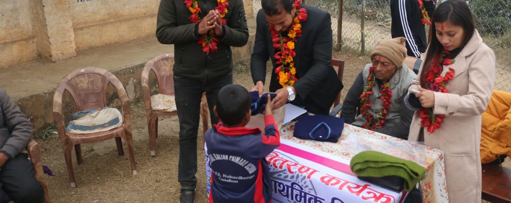 जनजागृति माध्यमिक विद्यालय पोखरी भञ्ज्याङ र बालकल्याण प्रावि व्यास १३ कुकुरढुङ्गेका २०÷२० जना जेहेन्दार, गरिव विद्यार्थीलाई स्विटर वितरण गरिएको हो ।