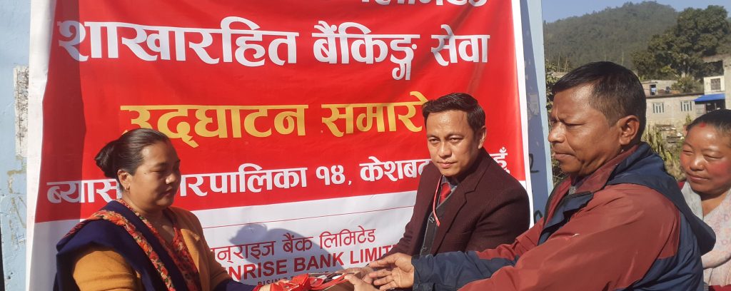 दमौलीः व्यास १४ केशवटारबासीले अब गाउँमै आधारभूत बैंकिङ सेवा पाउने भएका छन् । सनराइज बैंक लिमिटेड दमौली शाखाले शुक्रबारबाट केशवटारमा शाखारहित बैंकिङ्ग सेवाको सुरुवात गरेको हो ।