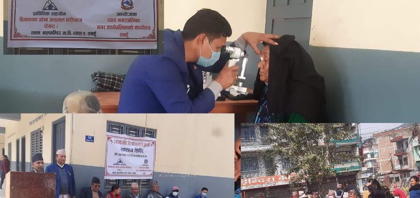 दमौलीः व्यास नगरपालिकाले ६०बर्ष भन्दा माथिका ज्येष्ठ नागरिकका लागि आँखा शिविर सञ्चालन गरेको छ । हिमालय आँखा अस्पताल घारीपाटन पोखराको प्राविधिक सहयोगमा शिविर सञ्चालन गरिएको हो । फागुन ११,१२,१३र १४गते ४ दिन गरिने शिविरमा व्यास नगरपालिकाको १४वटै वडाका ज्येष्ठ नागरिकहरको परिक्षण गरिने नगरपालिकाले जानकारी दिएको छ।