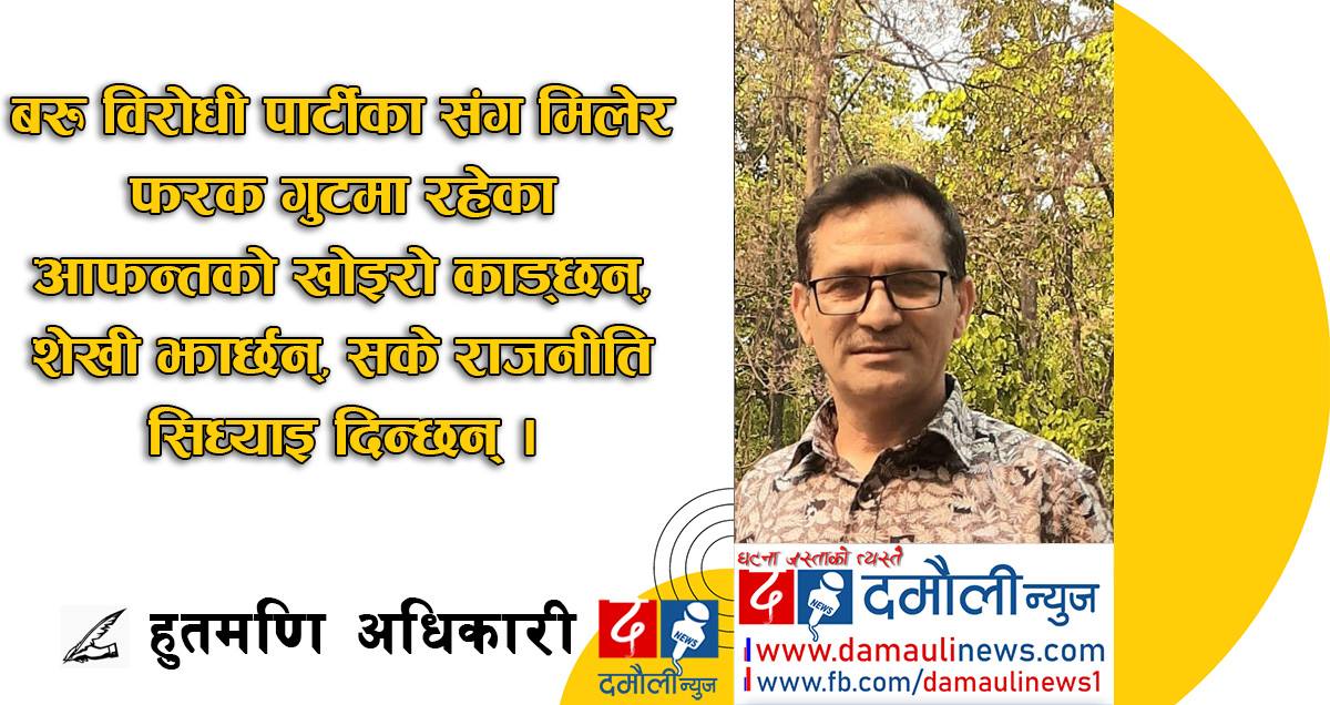 यिनलाई पार्टी र गुटको फरक सम्म थाहा हुन्न, आफुभन्दा अलग गुटमा रहेकालाइ बैरी, दुश्मन ठान्छन्, ईष्र्या, डाह र प्रतिशोधका कारण यौटा पनि गुण, विशेषता, योग्यता देख्दैनन् । बरु विरोधी पार्टीका संग मिलेर फरक गुटमा रहेका आफन्तको खोइरो काड्छन्, शेखी झार्छन्, सके राजनीति सिध्याइ दिन्छन् । गोटीले गुट मात्र जान्दछ । उसले बिचार, पार्टी, पद्धति र संस्कृति जान्दैन यसर्थ आसन्न महाधिवेशनमा गोटी बनाउने र बन्नेबाट पार्टीलाई जोगाउनु अहिलेको अहं दायित्व हो ।